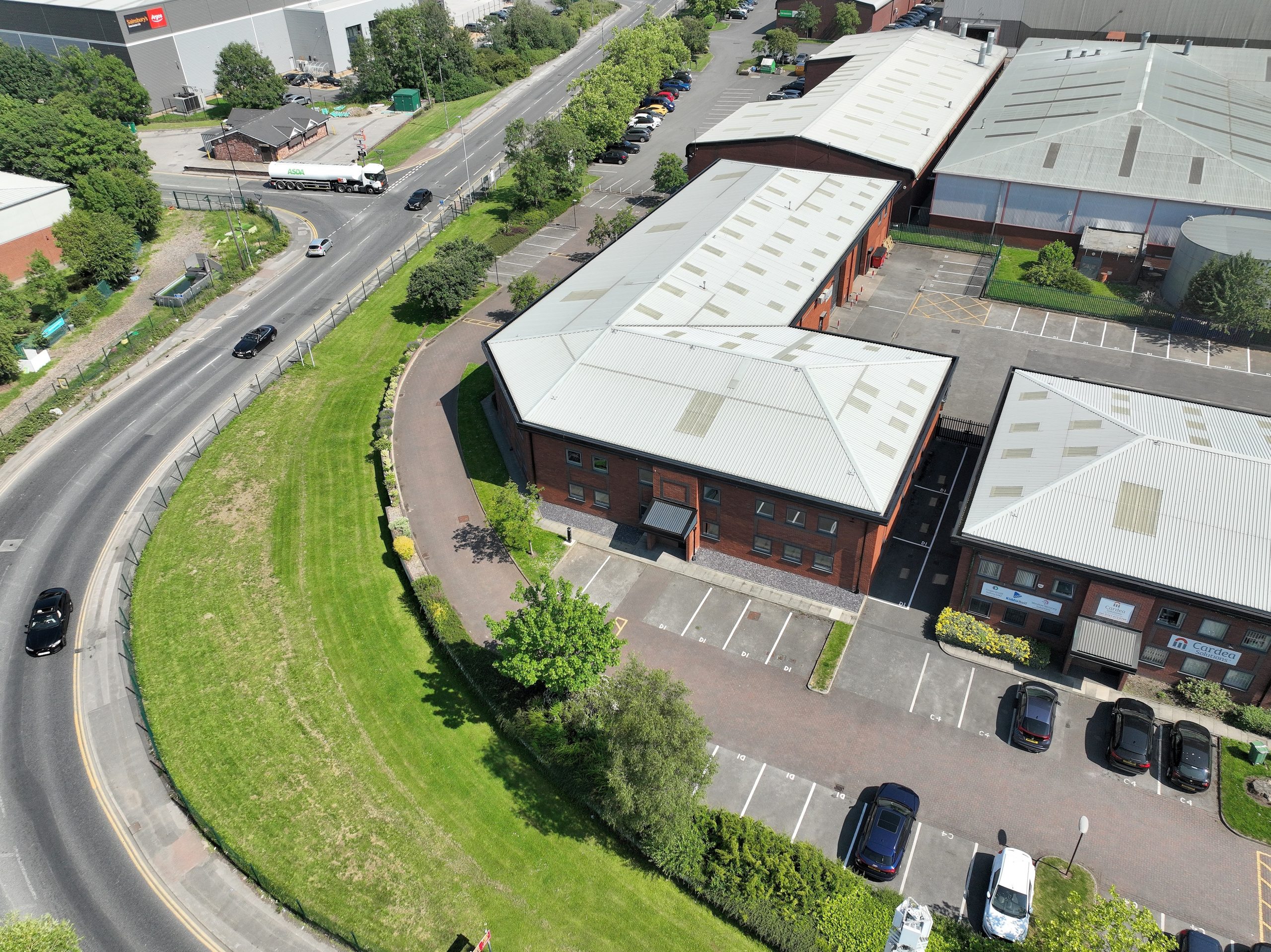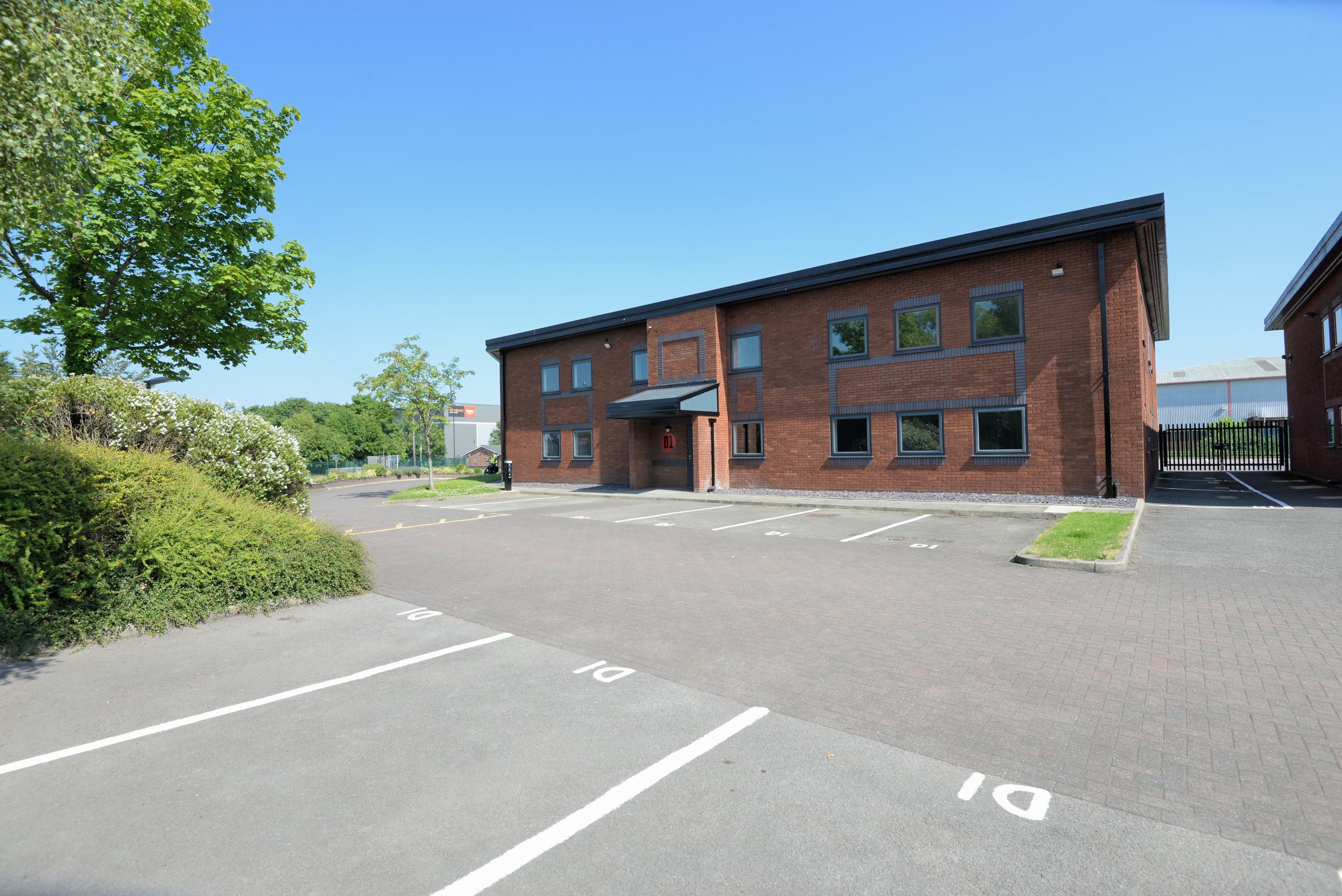 construction with brick cladding externally and steel profile roofs. Offices and parking are arranged to the front of the units to provide an attractive courtyard with loading / service yards accessed via a separate entrance.